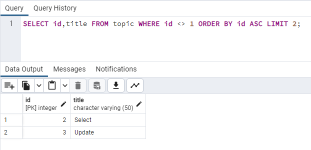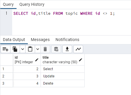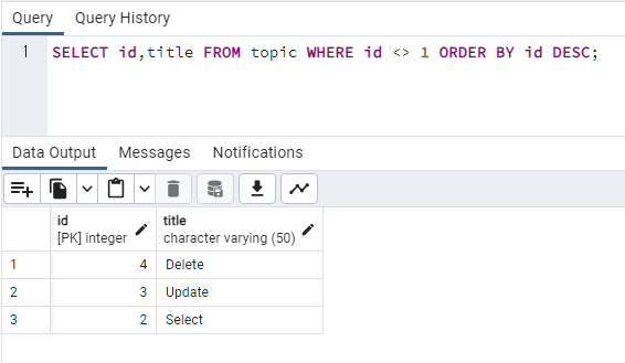 이번에는 id 값이 1이 아닌 행만 출력해보겠습니다.