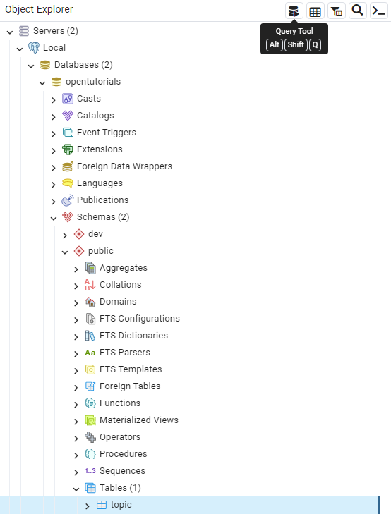 Table을 선택한 뒤, Object Explorer과 같은 라인에 있는 Query Tool을 누릅니다.