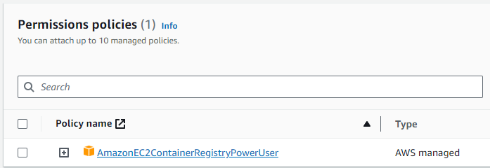 AmazonEC2ContainerRegistryPowerUser Policy를 가진 IAM Role을 생성합니다.