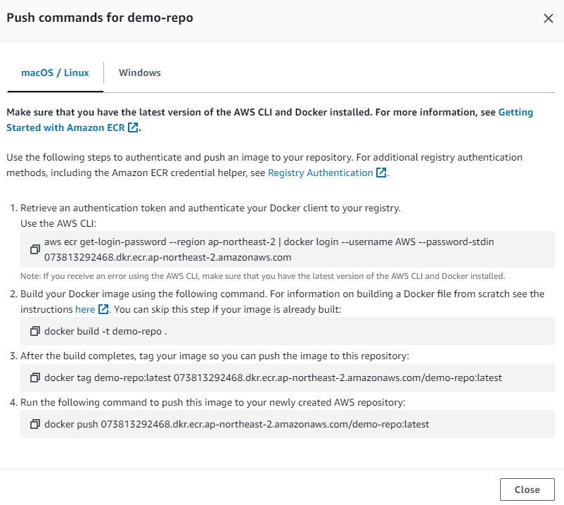 ECR 인증 토큰을 사용하여 Private Repository로 push 할 수 있게 합니다.