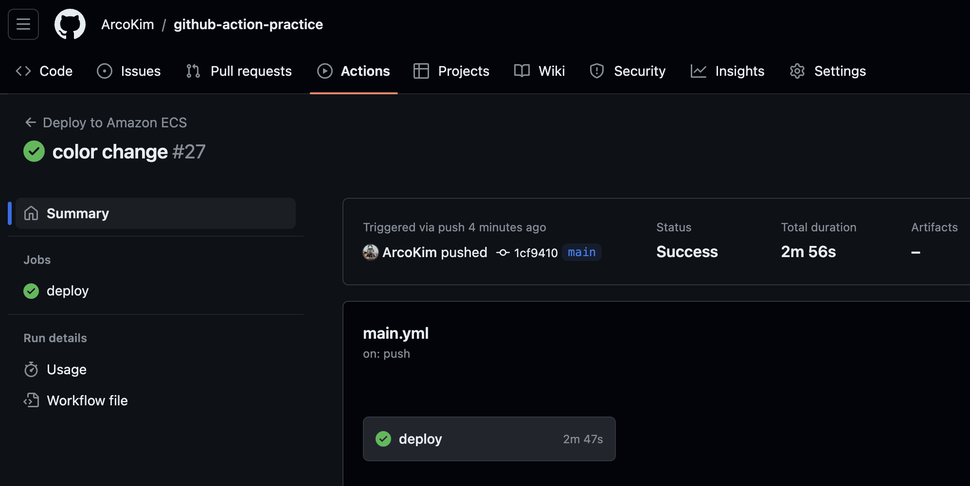 Github Repository의 Actions 탭에 가보면 CI/CD가 성공적으로 진행된 것을 확인할 수 있습니다.