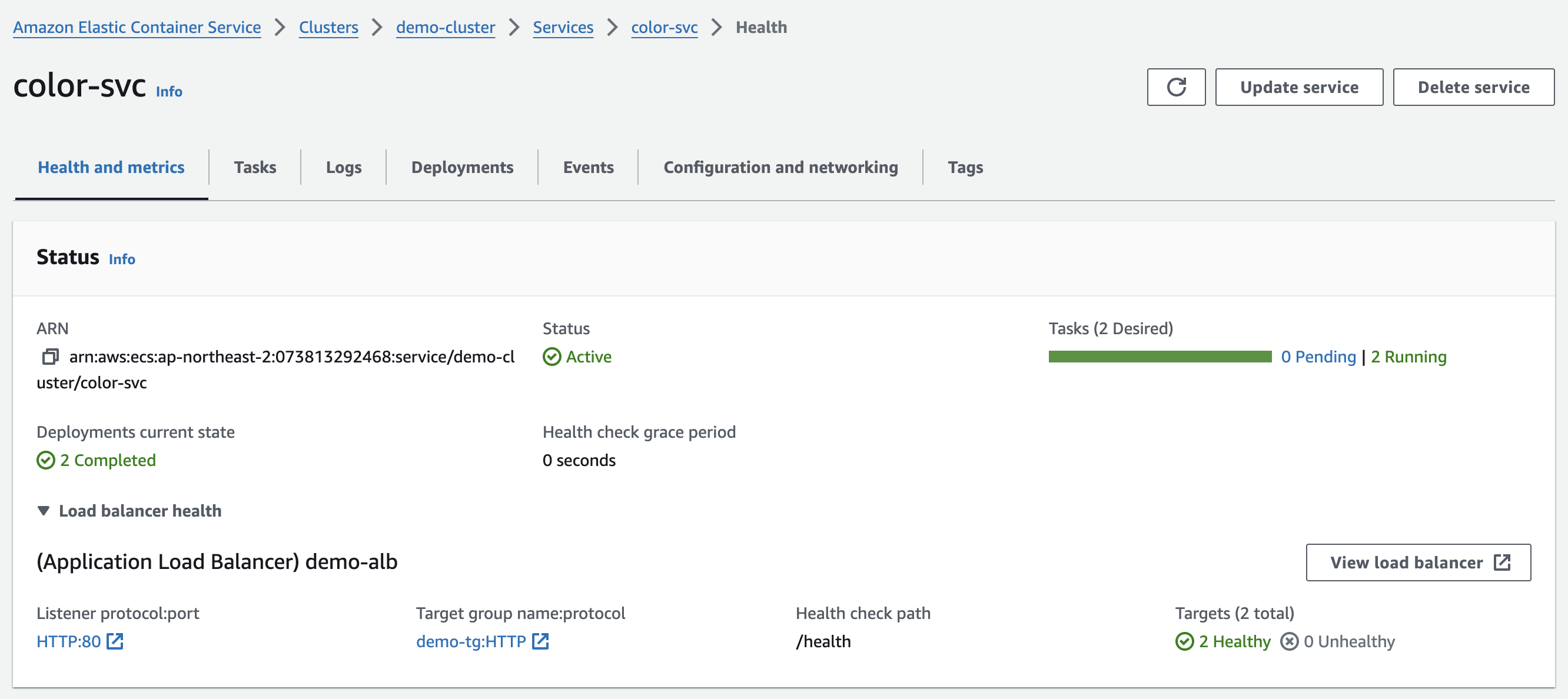 - Deploy Amazon ECS task definition : ECS Service가 새로운 버전의 Task Definition을 사용하도록 합니다.