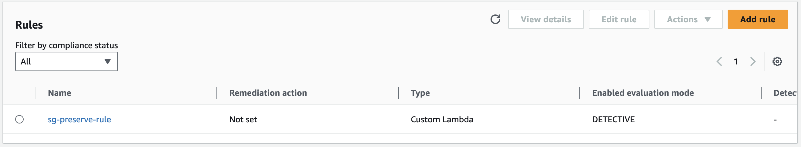 - COMPLIANT : 보안 그룹이 규칙 준수 조건에 부합하는 상태입니다.