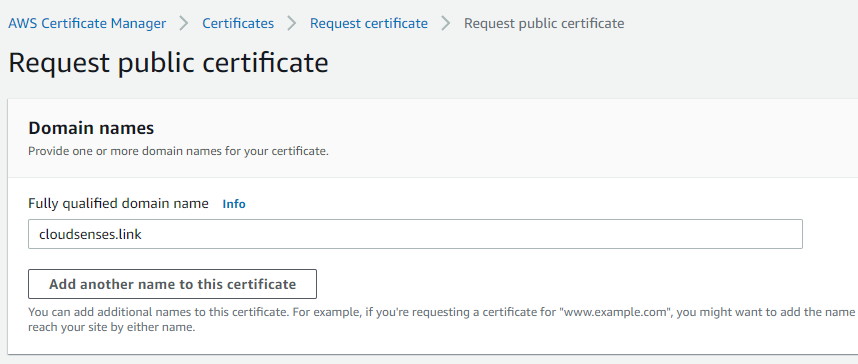 이제 HTTPS의 암호화 역할을 하는 인증서를 발급합시다. 인증서 발급에는 AWS Certificate Manager를 사용합니다.