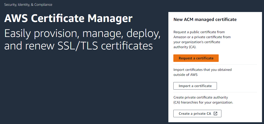 AWS Certificate Manager로 SSL/TLS 인증서를 무료로 발급 / 관리할 수 있다는 것이 장점입니다.