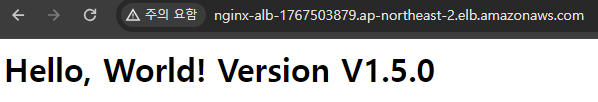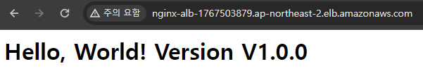현재 제 이미지는 1.0.0 버전이기 때문에 ALB를 통해 접속하면 다음과 같이 나옵니다.