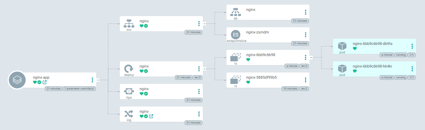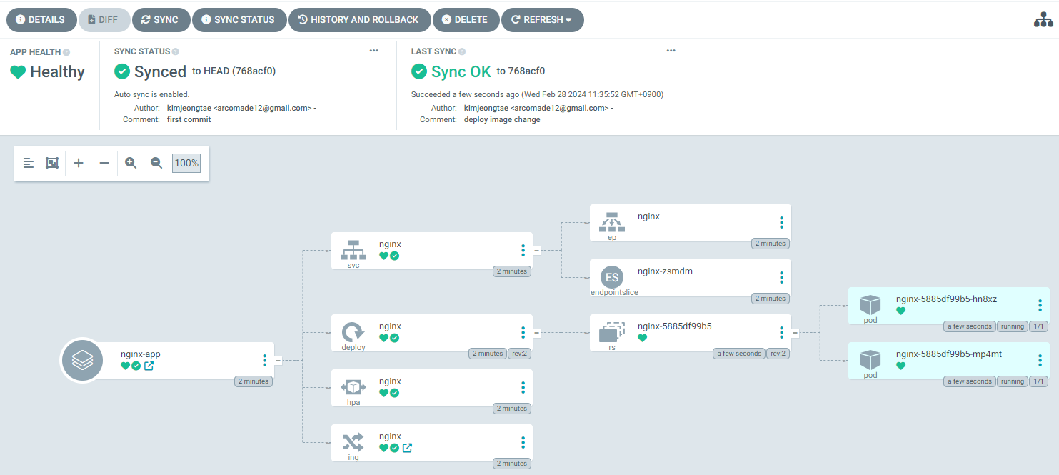 조금 기다리면 Deployment를 통해 새로운 Replicaset이 생성된 것을 볼 수 있습니다.