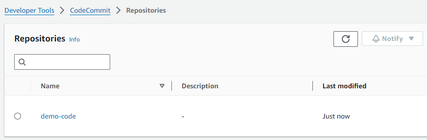 Kubernetes 리소스 yaml이 위치할 CodeCommit Repository도 하나 생성합니다.