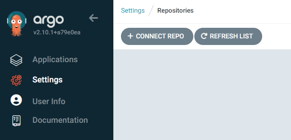 Settings / Repositories에서 CONNECT REPO를 누릅니다.