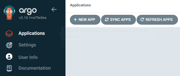 본격적으로 ArgoCD Application을 생성합니다. Application / NEW APP을 누릅니다.
