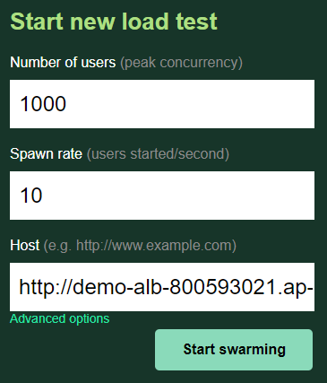 Spawn rate는 1초당 추가되는 사용자의 수입니다. 10으로 설정하겠습니다.